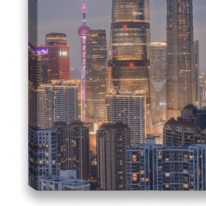 Bestelle dieses moderne Wandbild Shanghai am Abend von Sidney van den Boogaard als Reproduktion auf Leinwand, Alu-Dibond, als Poster, Fototapete oder Acrylglasbild.