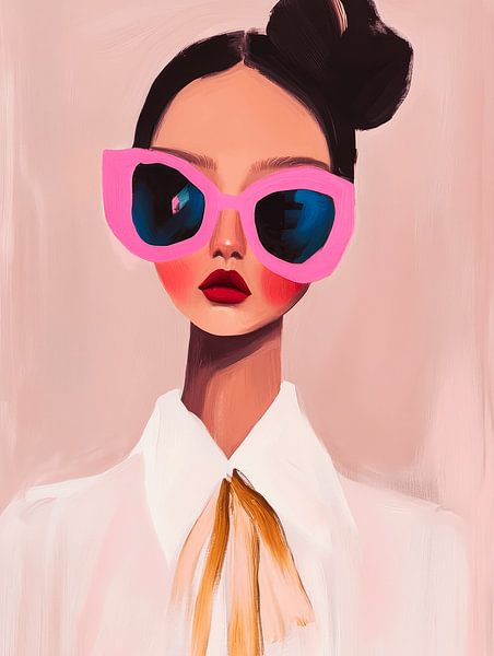 Sie sieht alles durch eine rosarote Brille, moderne Illustration. Ein besonderer Blickfang für Ihr Interieur! Wählen Sie das Format und das Material für dieses Werk und machen Sie es zu Ihrem eigenen.
