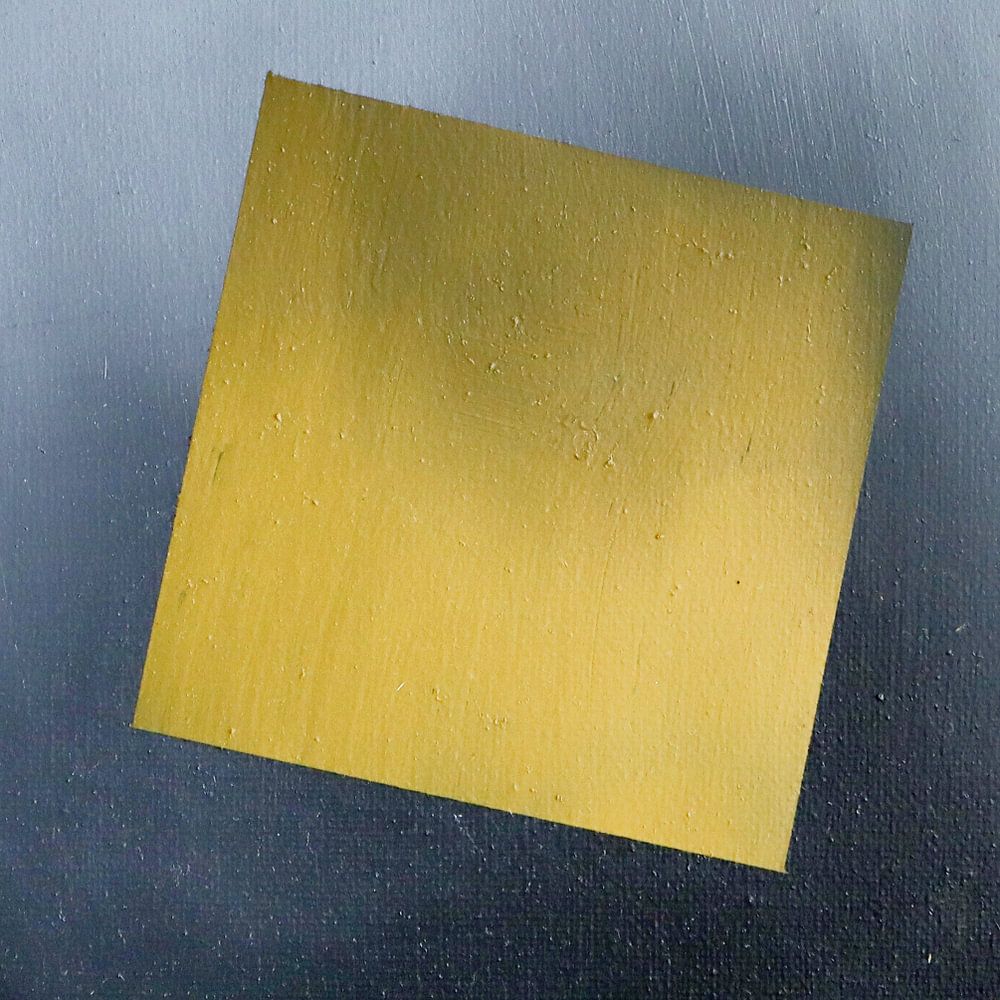 Ölgemälde mit quadratischen Flächen in Schwarzgrau und Ockergelb