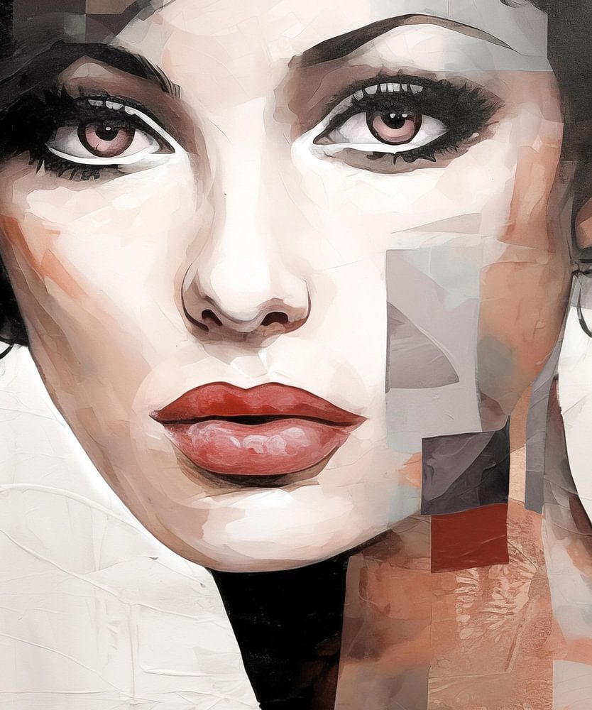 Abstraktes, ausdrucksstarkes Porträt einer schönen Frau, hauptsächlich in Brauntönen gehalten.