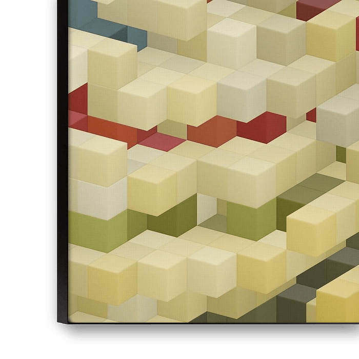 Mit "Seventies blocks" können Sie die farbenfrohe und dynamische Ästhetik der 1970er Jahre in einem zeitgenössischen Look genießen. Das Werk wird Bewunderung hervorrufen und zu Gesprächen anregen, während es Ihr Interieur mit einem modernen und künstlerischen Look bereichert.