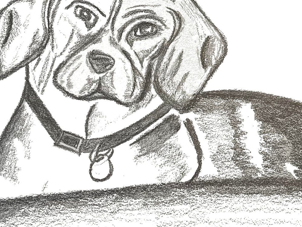Mein Beagle ist immer neugierig, wenn ich zeichne, also habe ich beschlossen, sie zu zeichnen. Meine Arbeiten sind ausschließlich mit Bleistift gezeichnet und bestehen aus Schatten und verschiedenen Bleistiftlinien.