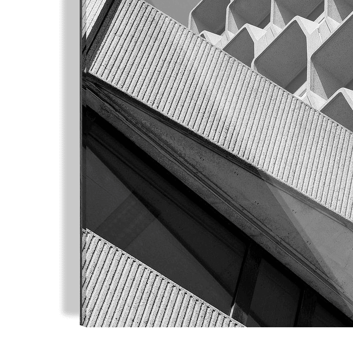 Detail der Betonfassade des Sijthoff-Gebäudes in Rijswijk. Brutalistisches Bürogebäude von 1980.