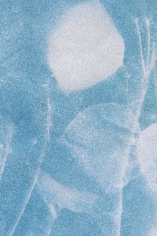 Die durchscheinenden, botanischen Formen der Samenkapseln der Silberblattpflanze oder Mondviole (Lunaria) heben sich vor einem blauen Hintergrund ab und vermitteln ein Gefühl der Ruhe. Das ätherische Design fängt natürliche Elemente auf wunderschöne Weise ein.