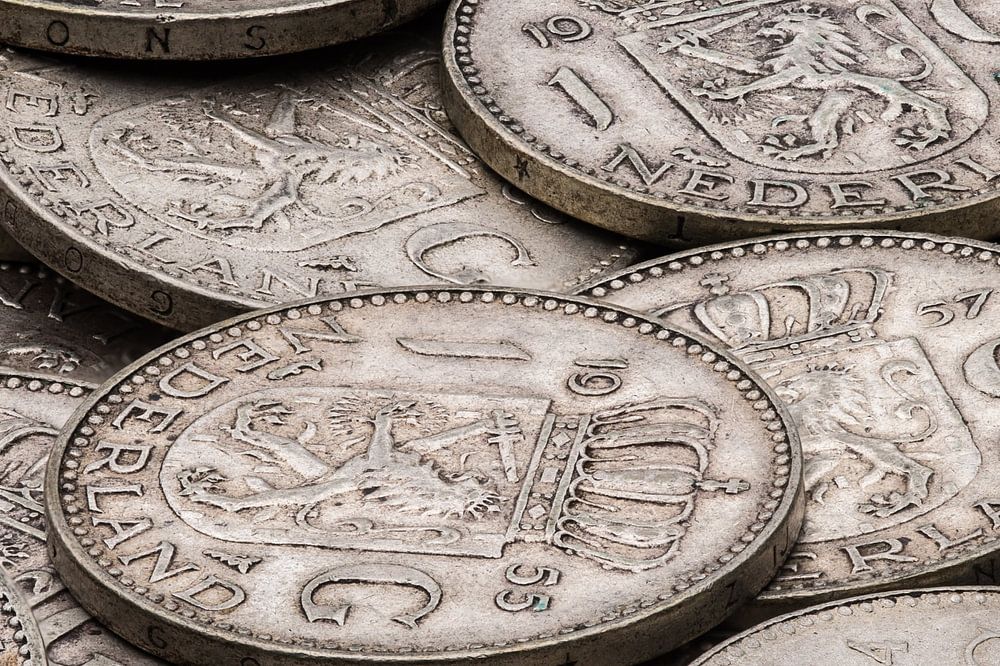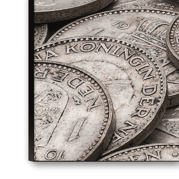 Der Gulden: Bevor der Euro eingeführt wurde, war der Gulden das gesetzliche Zahlungsmittel der Niederlande. Die hier zu sehenden niederländischen Gulden sind alle in 72 % Silber geprägt worden. Diese Münzen werden nun gegen den Silberwert gehandelt, da dieser höher ist als der Nennwert. Die Silbergulden (1954-1967) wiegen jeweils 6,5 Gramm und sind aus 72 % Silber geprägt. Jeder Gulden enthält also 4,68 Gramm reines Silber.