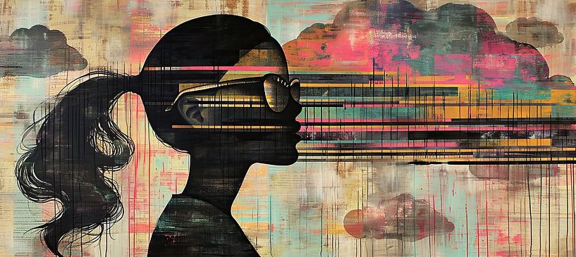 Bestelle dieses abstrakte Wandbild Silhouette einer Frau von Kunst Laune als Kunstdruck auf Leinwand, Alu-Dibond, als Poster, Fototapete oder Acrylglasbild.