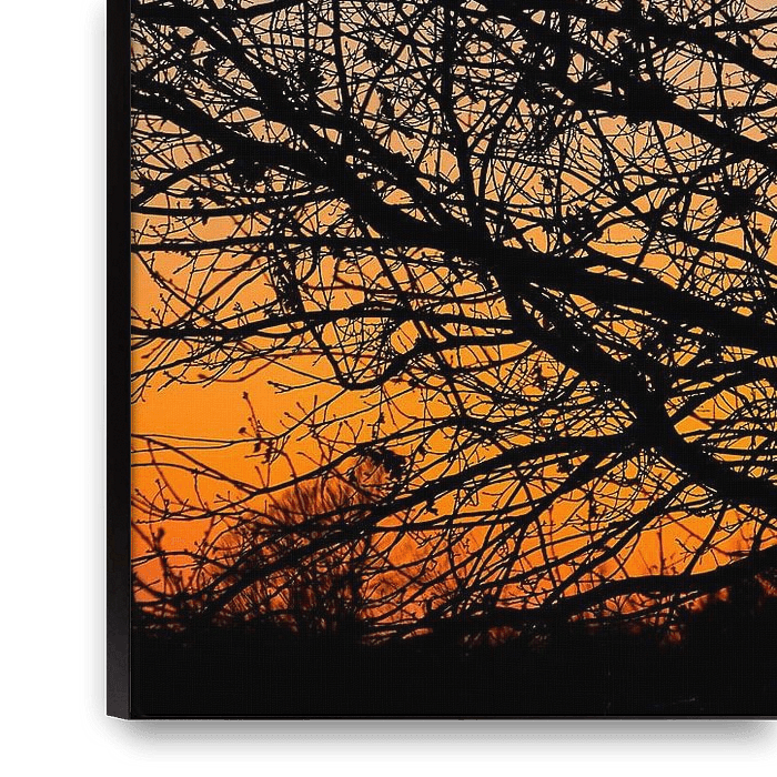 Bestelle das Foto Silhouette eines Baumes im Abendlicht von Bas Vogel als Reproduktion auf Leinwand, Alu-Dibond, als Poster, Fototapete oder Acrylglasbild.