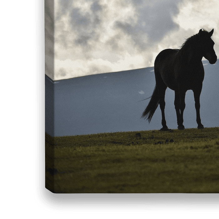 Bestelle das Foto Silhouette eines Islandpferdes im Sommer von Elisa in Iceland als Reproduktion auf Leinwand, Alu-Dibond, als Poster, Fototapete oder Acrylglasbild.