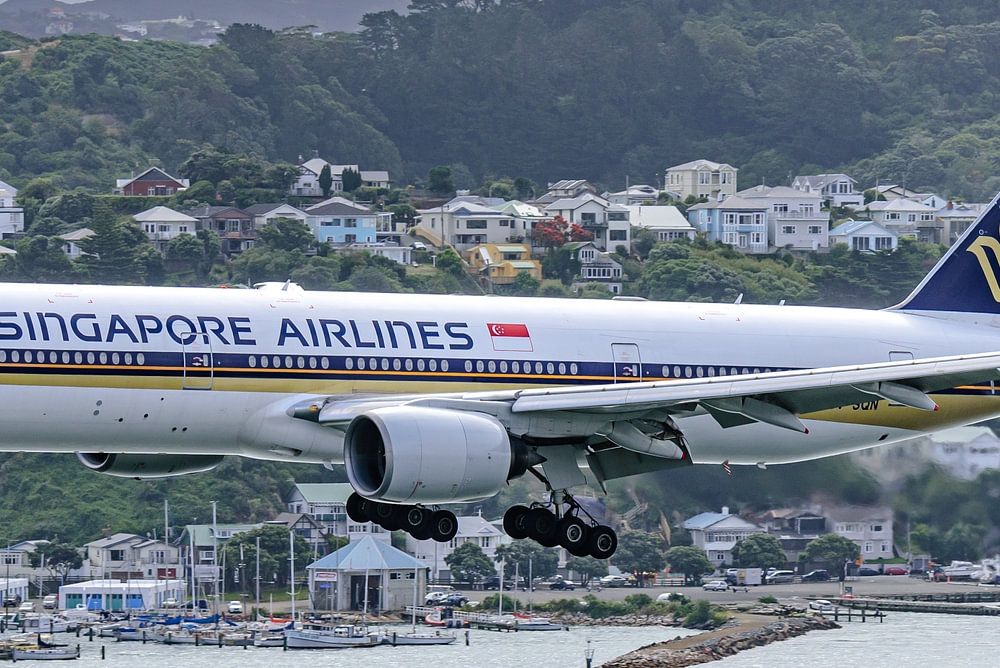 Singapore Airlines Boeing 777-200 am Flughafen Wellington.