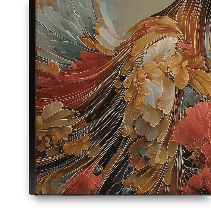 Ihre gewählte Kunst auf Leinwand, gespannt in einem Aluminiumrahmen. Schnell und einfach austauschbar für eine frische Ausstrahlung und ganz nach Ihren Wünschen.