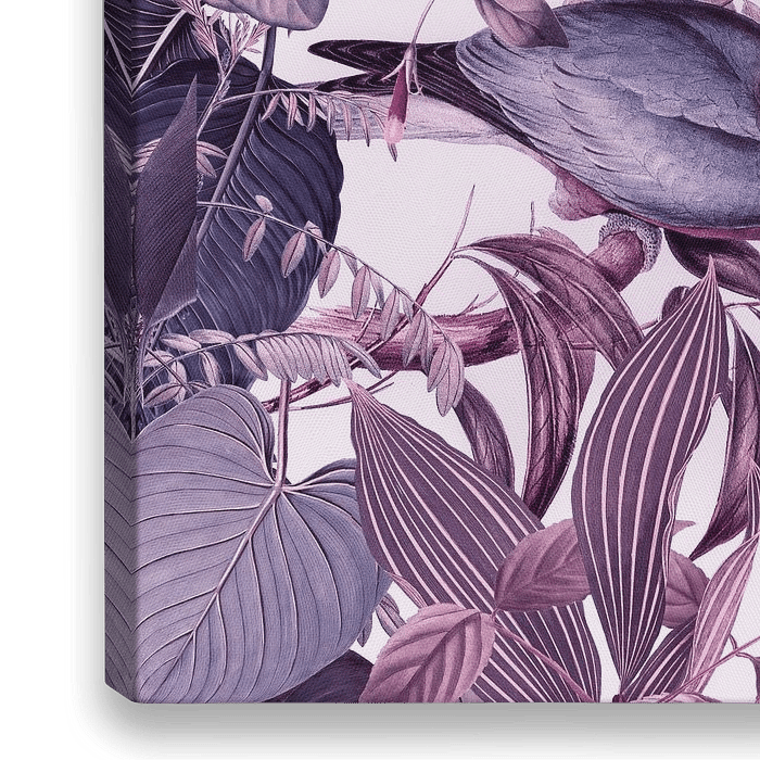 Tropische Vögel im Urwald, Vintage Stil Illustration in monochromen Lila