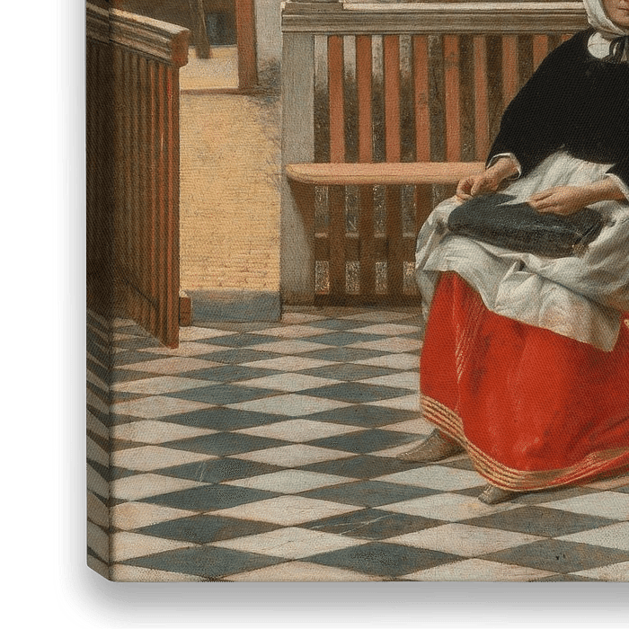Bestelle Sitzende Frau und Dienstmädchen, Pieter de Hooch als Reproduktion auf Leinwand, Alu-Dibond, als Poster, Fototapete oder Acrylglasbild.