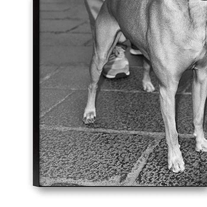 Bestelle das Foto Sizilianischer Cirneco dell’Etna auf der Piazza in Taormina - monochrom von Silva Wischeropp als Reproduktion auf Leinwand, Alu-Dibond, als Poster, Fototapete oder Acrylglasbild.