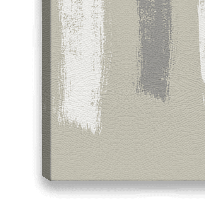 Eine skandinavische abstrakte Pinselstrich Malerei geometrischer Formen im beliebten XL Panoramabild Format in Weiss Grau.