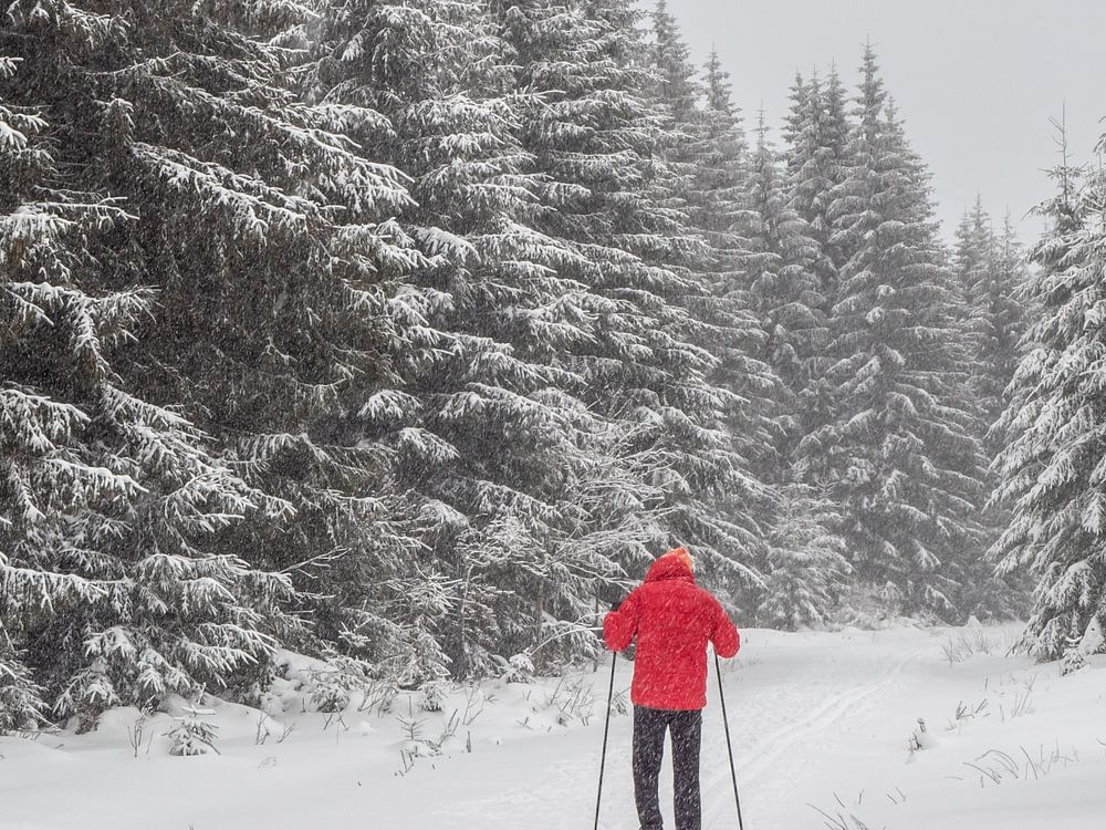 Skifahren in den Wäldern des Erzgebirge