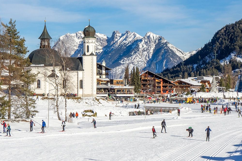 Skigebiet in den österreichischen Bergen in Seefeld Tirol