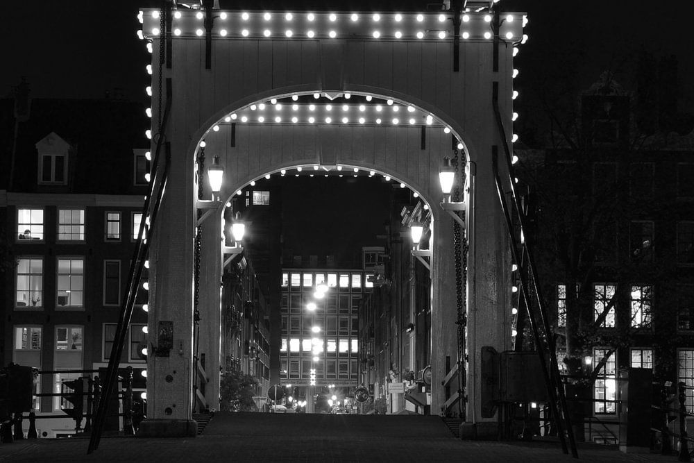 Amsterdams ach so berühmte Skinny Bridge über die Amstel. Dieses schwarz-weiße Bild würde in einem Wohnzimmer über dem Sofa sehr schön aussehen. Von diesem Bild werden nur 25 Stück verkauft.