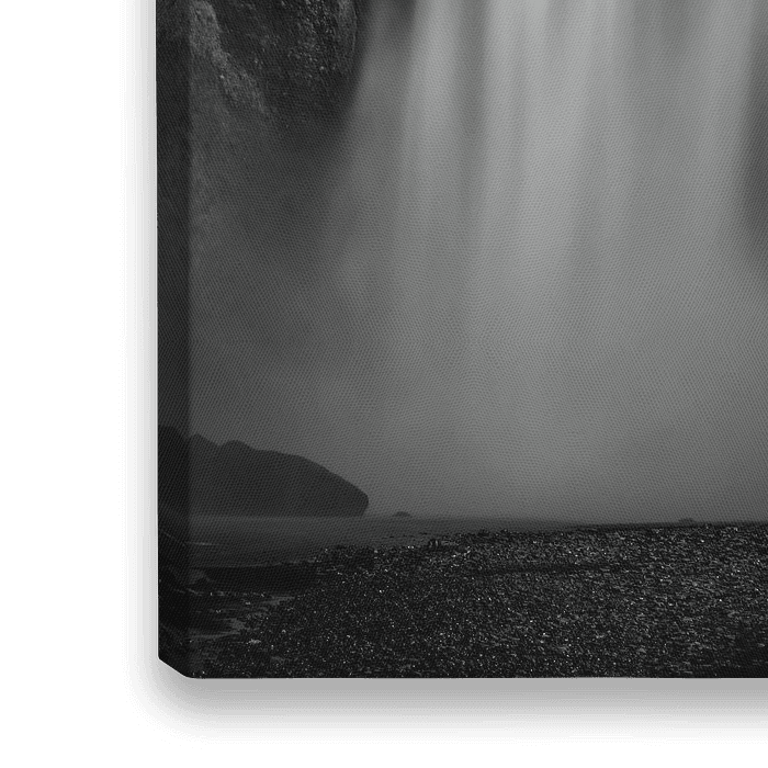Skogafoss Wasserfall in Island. Schwarz-Weiß-Langzeitbelichtungsaufnahme.