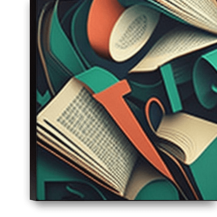 Bestelle das digitale Kunst Bild Skurriles Buch & Buchstabenmuster von Vythryd Arts als Reproduktion auf Leinwand, Alu-Dibond, als Poster, Fototapete oder Acrylglasbild.