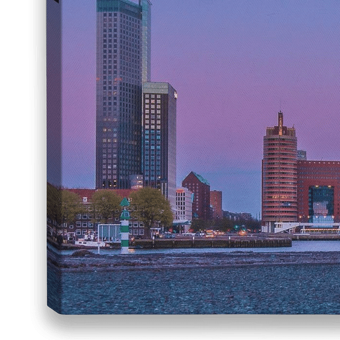 Bestelle dieses Rotterdam-Wandbild Skyline Rotterdam von Jelmer van Koert als Reproduktion auf Leinwand, Alu-Dibond, als Poster, Fototapete oder Acrylglasbild.