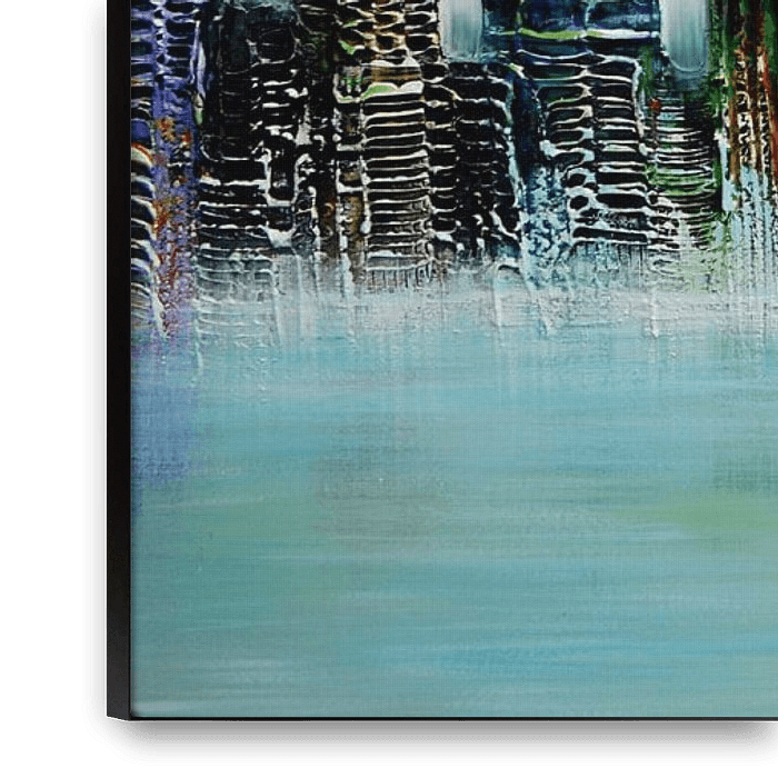 Bestelle dieses abstrakte Wandbild Skyline Stadt von Gena Theheartofart als Reproduktion auf Leinwand, Alu-Dibond, als Poster, Fototapete oder Acrylglasbild.