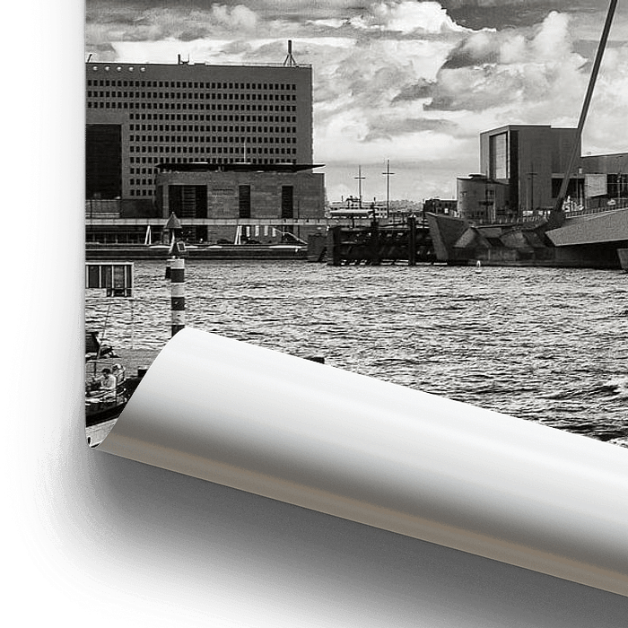 Die Skyline von Rotterdam, fotografiert vom Leuvehoofd aus. Infrarotbild, nachbearbeitet in schwarz-weiß.