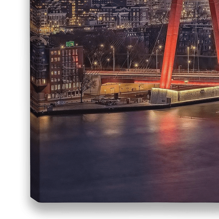 Bestelle dieses Rotterdam-Wandbild Skyline von Rotterdam von Leon Okkenburg als Reproduktion auf Leinwand, Alu-Dibond, als Poster, Fototapete oder Acrylglasbild.