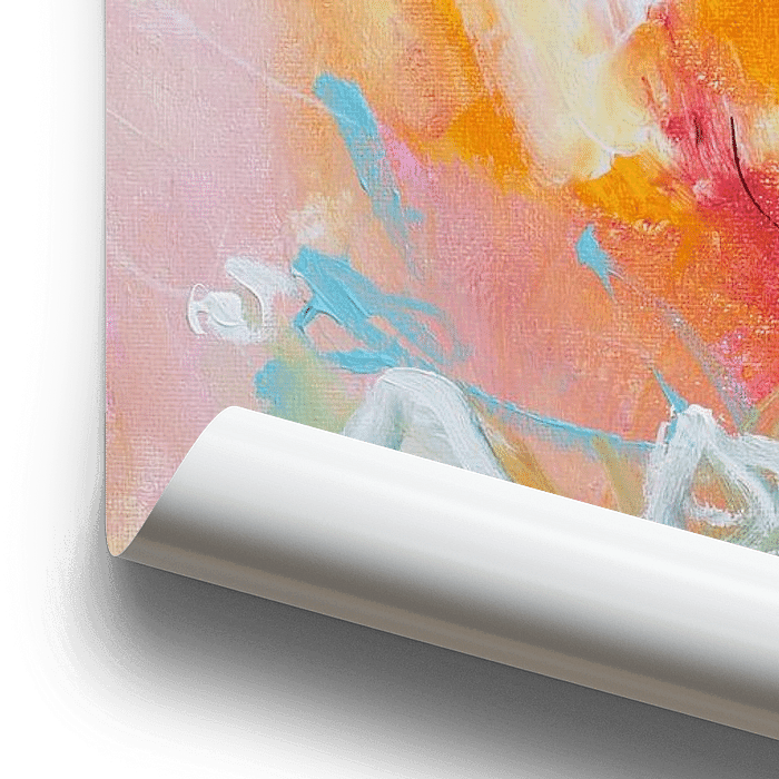 Dieses abstrakte Bild macht eine Ecke Ihres Zuhauses zu einem schönen Ort zum Träumen. Oder in einem größeren Format, das Ihrem Raum eine warme Ausstrahlung und einen lebendigen Charakter verleiht.