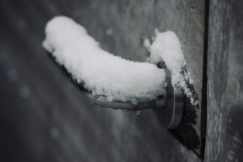 Bestelle das Foto Snowy door handle von Marthe Hermie als Reproduktion auf Leinwand, Alu-Dibond, als Poster, Fototapete oder Acrylglasbild.