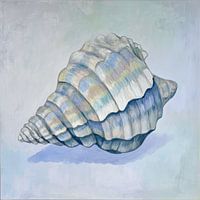 Diese Muschel scheint nicht nur vom Meer, sondern auch von der Zeit geformt worden zu sein. Die sanften Farbverläufe und die geschichtete Struktur verleihen ihr eine fast malerische Zerbrechlichkeit, als wäre sie langsam aus Erinnerungen entstanden.