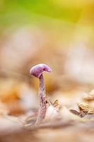 Völlig in seinem Hoppie zwischen den Blättern, schön in Purpur, stieß ich im Wald auf diesen Pilz.