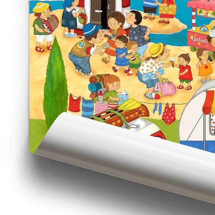 Bestelle diese Illustration Sommer, Strand und Camping von Marion Krätschmer als Reproduktion auf Leinwand, Alu-Dibond, als Poster, Fototapete oder Acrylglasbild.