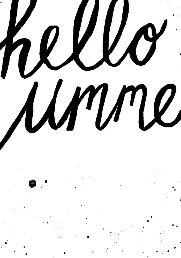 Hallo Sommer Zitat Illustration in schwarz und weiß.