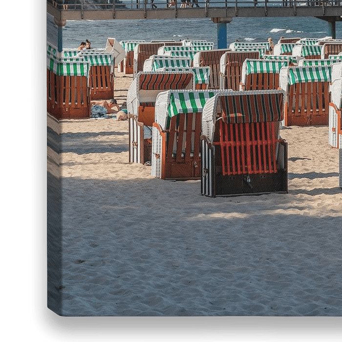 Seebrücke und Strandkörbe am Strand von Sellin, Insel Rügen, Mecklenburg-Vorpommern, Deutschland