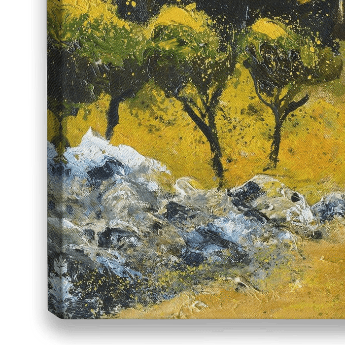 In diesem Werk habe ich versucht, das pulsierende Wesen der Provence unter einem stürmischen Himmel einzufangen. Unter Verwendung von Öl baute ich jeden Pinselstrich auf, um ein Gefühl des Staunens und der Ruhe heraufzubeschwören. Expressionismus und Impressionismus vermischen sich hier und schaffen einen Dialog zwischen der wilden…