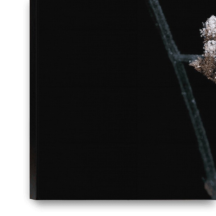 Eine abgestorbene und verwelkte Blüte aus dem Sommer und Frühherbst wird vom Raureif des Winters bedeckt. Mir gefällt das Glitzern der Eiskristalle vor dem dunklen Hintergrund. Auf diese Weise wird eine Blume noch salonfähig.