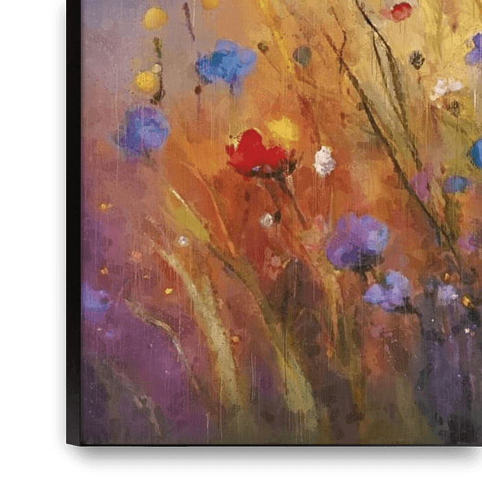 In der Wärme der Jahreszeit erwacht "Sommerfeld mit Wildblumen" zum Leben, ein Kunstwerk, das die Essenz des Sommers in jedem Pinselstrich einfängt. Die Wildblumen, die aus dem goldenen Schein des Feldes auftauchen, scheinen fast in der sanften Brise zu tanzen, während der Horizont in eine heitere Mischung aus Blau- und Gelbtönen…