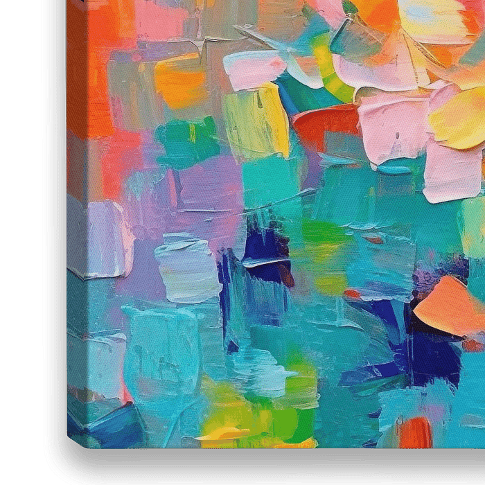 Modernes abstraktes Kunstwerk, das die visuellen Sinne mit seiner lebendigen Farbpalette und dynamischen Komposition anregt. Die Pinselstriche sind ausdrucksstark mit warmen Tönen, die eine fröhliche Sommeratmosphäre schaffen.