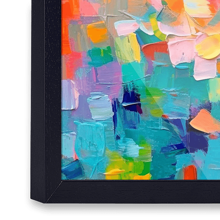 Modernes abstraktes Kunstwerk, das die visuellen Sinne mit seiner lebendigen Farbpalette und dynamischen Komposition anregt. Die Pinselstriche sind ausdrucksstark mit warmen Tönen, die eine fröhliche Sommeratmosphäre schaffen.