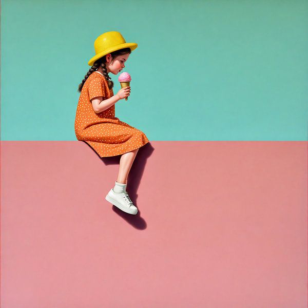 Bestelle dieses Popart-Wandbild Sommerglück: Mädchen mit Eiscreme von Jan Keteleer als Reproduktion auf Leinwand, Alu-Dibond, als Poster, Fototapete oder Acrylglasbild.