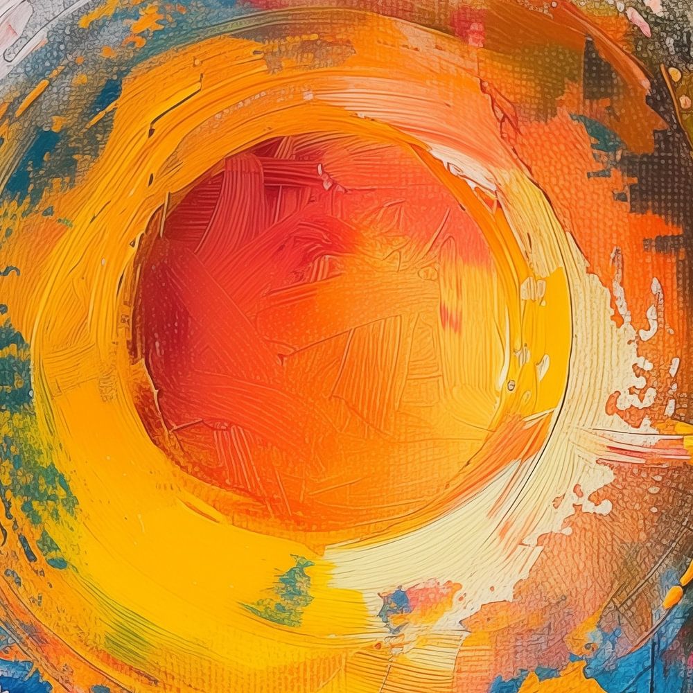 Abstraktes Gemälde in Form eines Sommerkreises mit einem schönen und einzigartigen Stil, der in jedem Raum atemberaubend aussehen wird. Dieses Kunstwerk ist dank seiner schönen Farben und seines stilvollen Designs für jeden Raum geeignet. 100% einzigartig und originell!