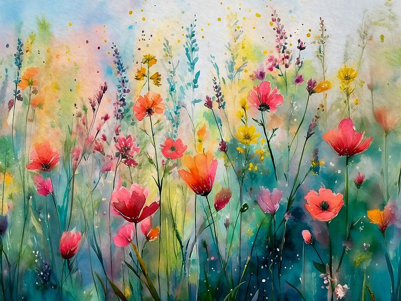 Bestelle dieses Landschafts-Wandbild Sommerliche und elegante Blumenfeldmalerei von Studio Pieternel als Reproduktion auf Leinwand, Alu-Dibond, als Poster, Fototapete oder Acrylglasbild.