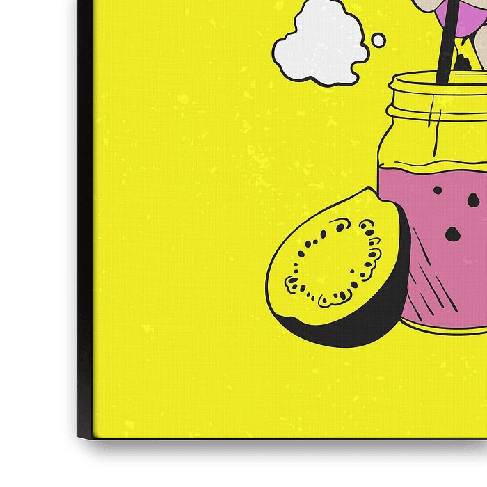 Die Illustration enthält einen subtilen japanischen Text, der dem Werk einen einzigartigen kulturellen Charme verleiht. Der leuchtend gelbe Hintergrund strahlt Wärme und Positivität aus und eignet sich daher perfekt für minimalistische Innenräume. Die schlichte Komposition wurde absichtlich so gestaltet, dass sie in jedem Raum eine saubere, moderne und ausgewogene Atmosphäre bewahrt.