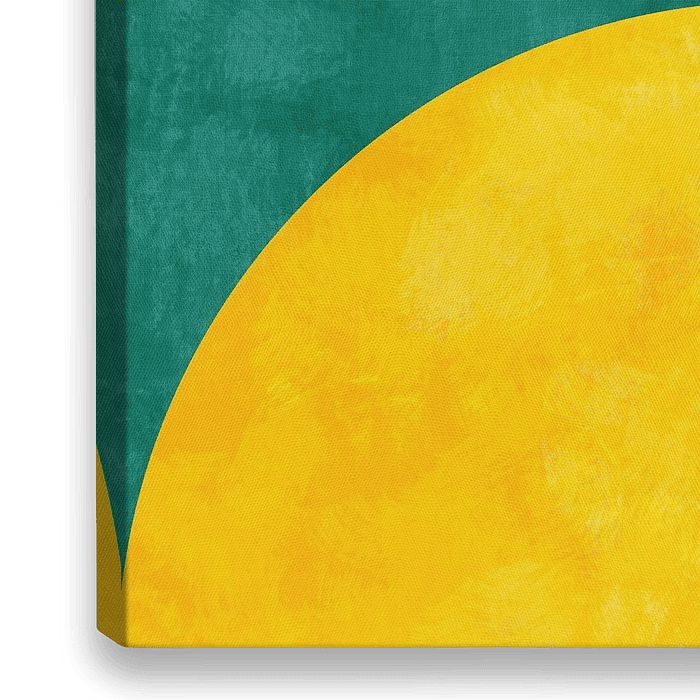 Minimalistische, malerische Darstellung, inspiriert durch 50er Jahre und Bauhaus Stil. Lebt von der Aussagekraft einfacher Formen und intensiver Farben.