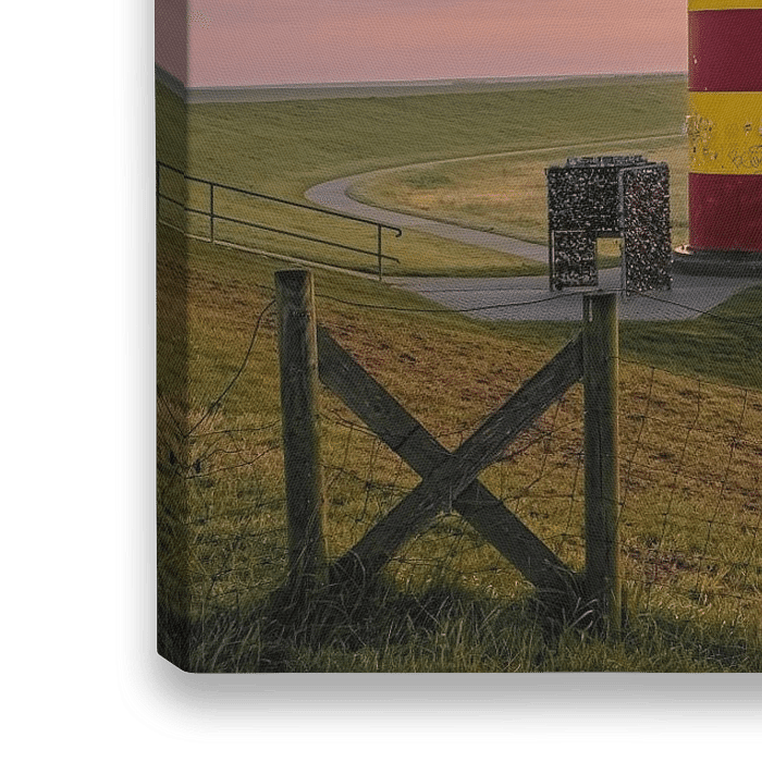 Bestelle das Foto Sonnenaufgang am Pilsumer Leuchtturm von Henk Meijer Photography als Reproduktion auf Leinwand, Alu-Dibond, als Poster, Fototapete oder Acrylglasbild.