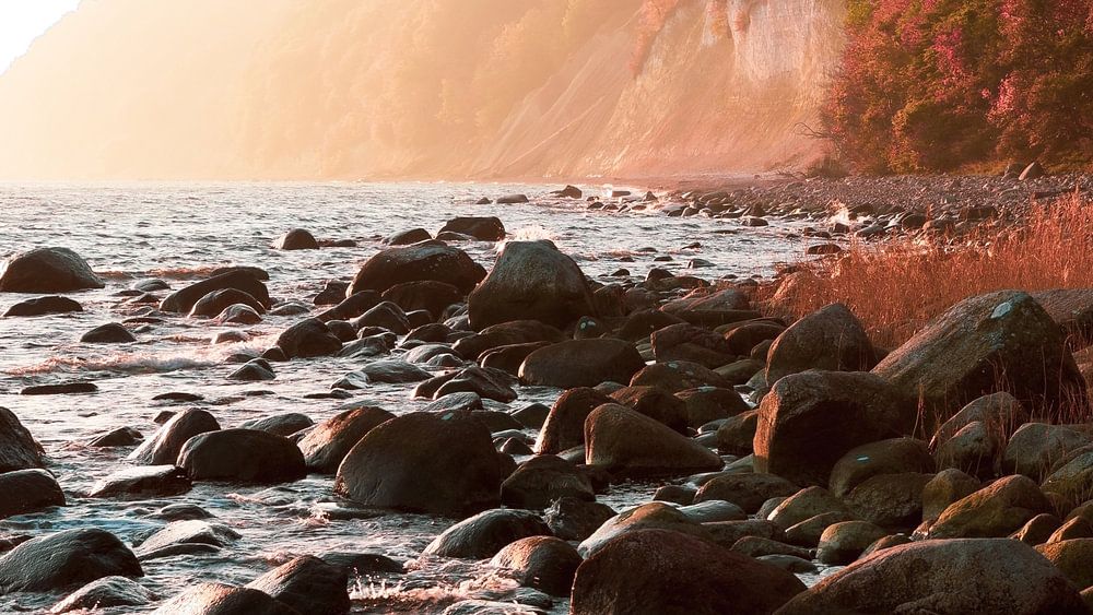 Sonnenaufgang an der Kreideküste auf Insel Rügen im Herbst