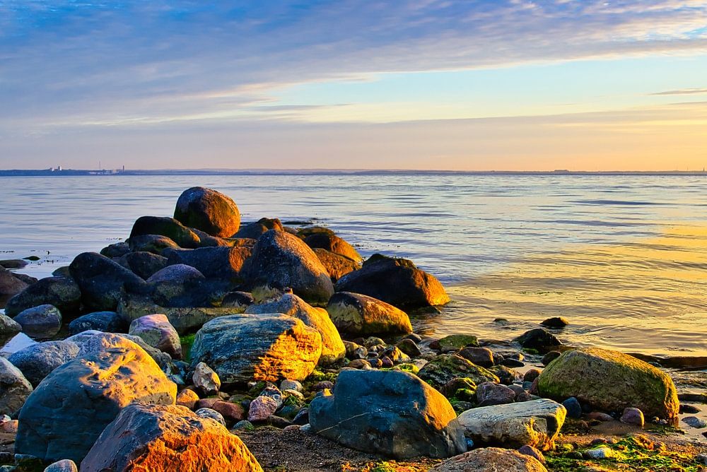 Sonnenaufgang an der Ostsee bei Timmendorfer Strand mit schönem Himmel