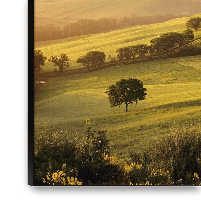 Bestelle dieses Landschafts-Wandbild Sonnenaufgang im Val d'Orcia, Toskana, Italien von Markus Lange als Reproduktion auf Leinwand, Alu-Dibond, als Poster, Fototapete oder Acrylglasbild.