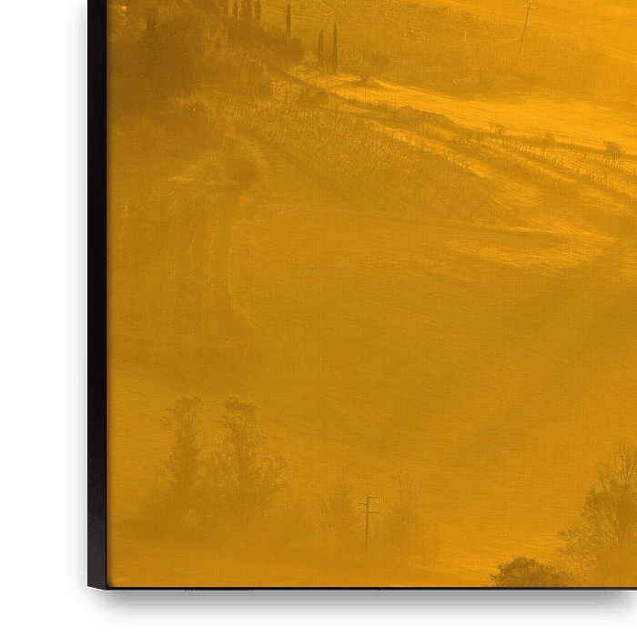 Ihre gewählte Kunst auf Leinwand, gespannt in einem Aluminiumrahmen. Schnell und einfach austauschbar für eine frische Ausstrahlung und ganz nach Ihren Wünschen.