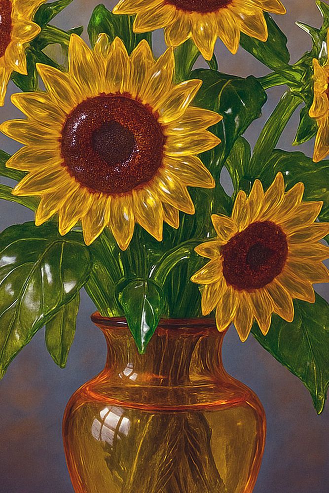 Sonnenblumen aus Glas in Vase Kunstwerk.